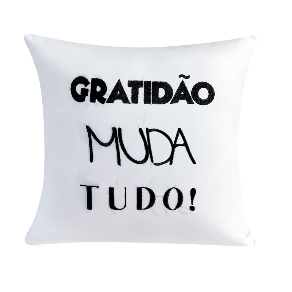 Capa de Almofada Bordada Avulsa com Zíper- Gratidão Muda Tudo - Enlevolar