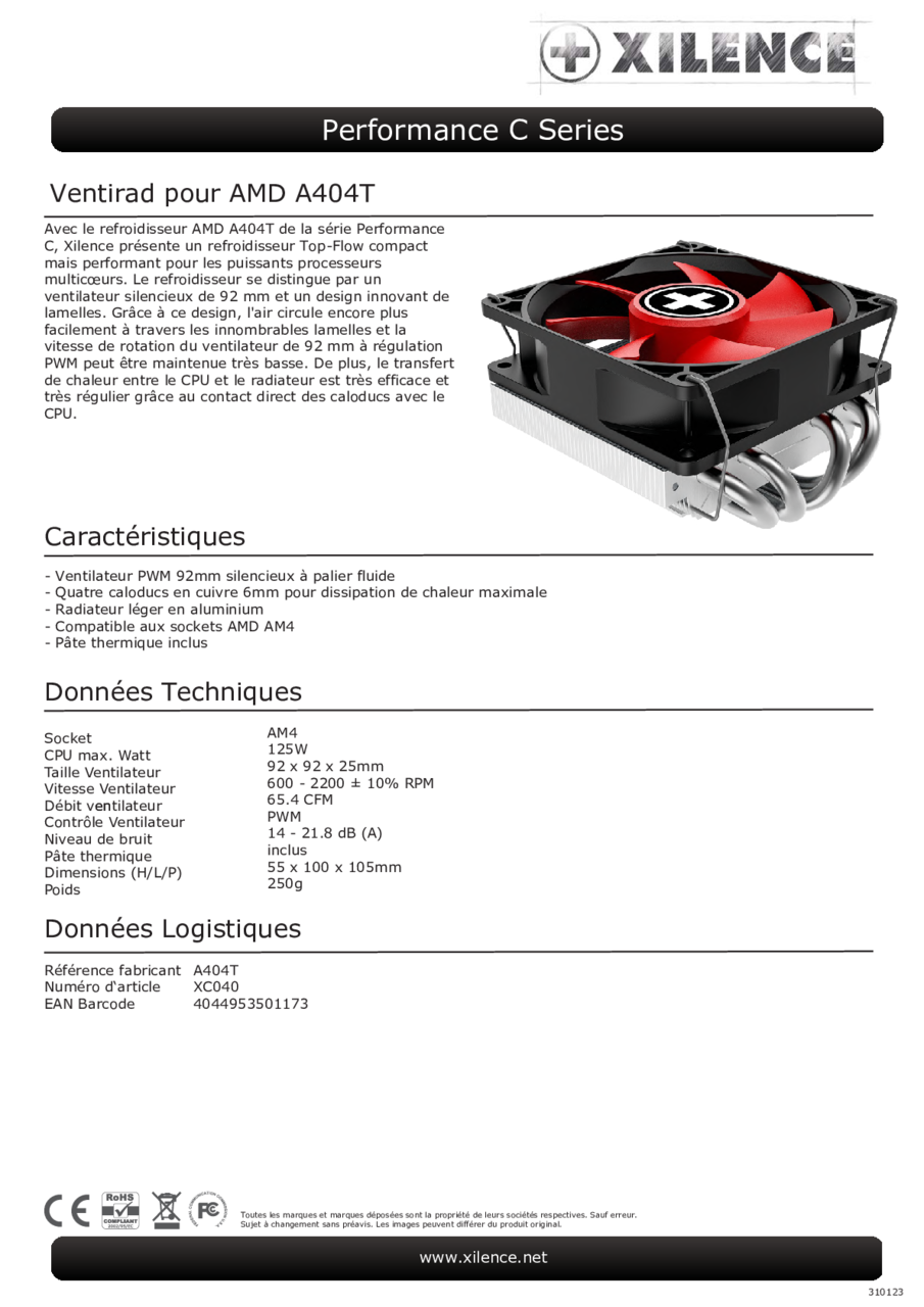 Xilence Xc040 A404t Cpu Cooler Am4 Am3 Am3 Am2 Am2 Fm2 Fm2 Fm1 Performance C A404t